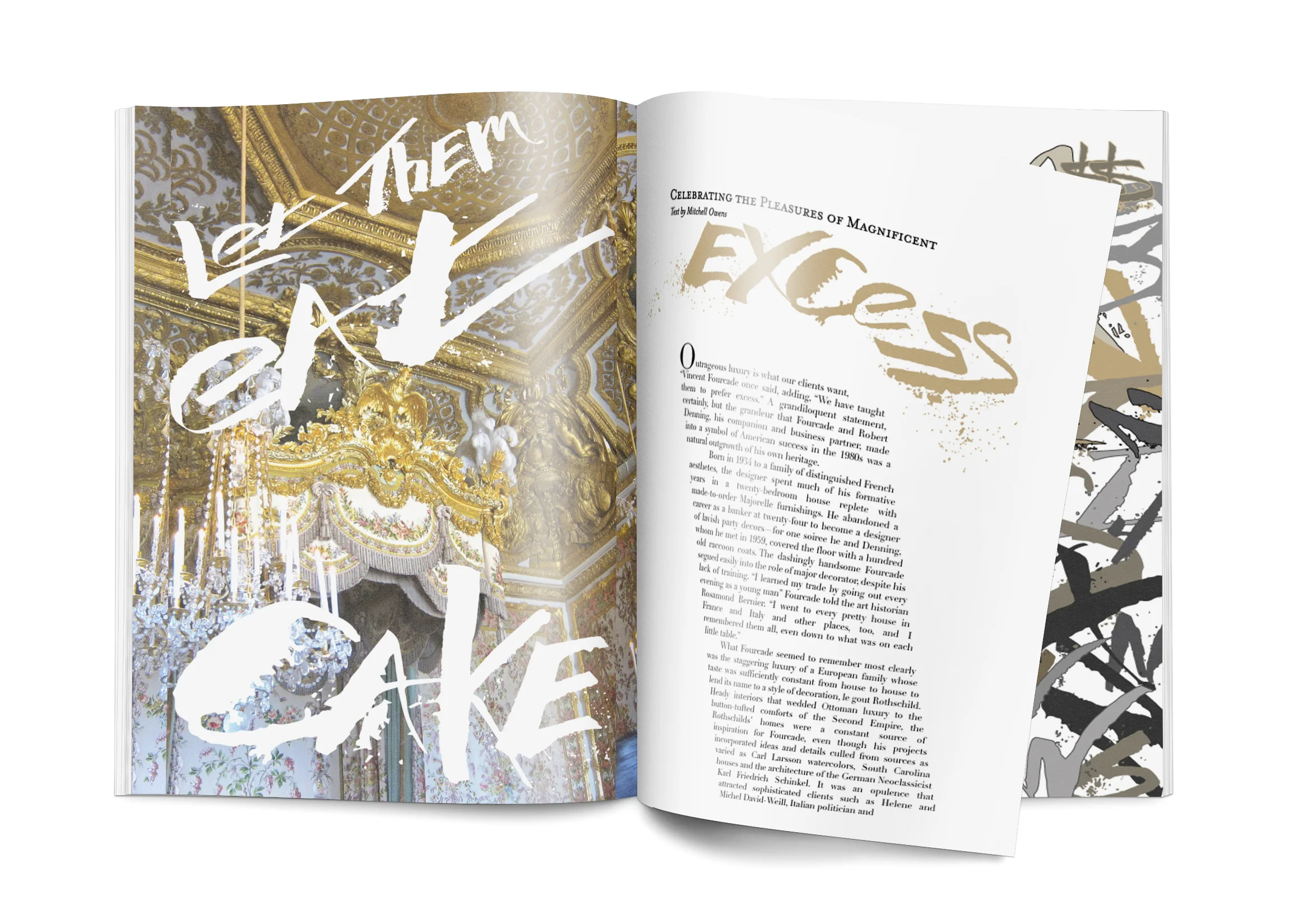 After creating an original, workable typeface named Medium Rare I decided its best function is to be used in a high fashion, editorial setting or headline. The strong marks are perfect for an eye-grabbing element within work. The copy used is an article focusing on architectural excess, hence Marie Antoinette’s room at the Palace of Versailles.